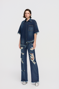 Fringed Hemline Demin Pants - 24 / Dark Blue