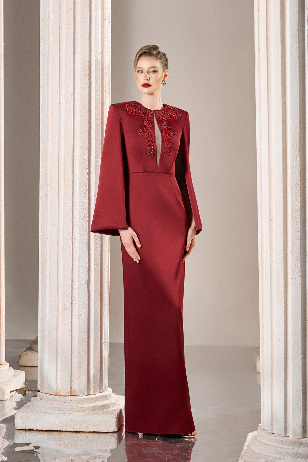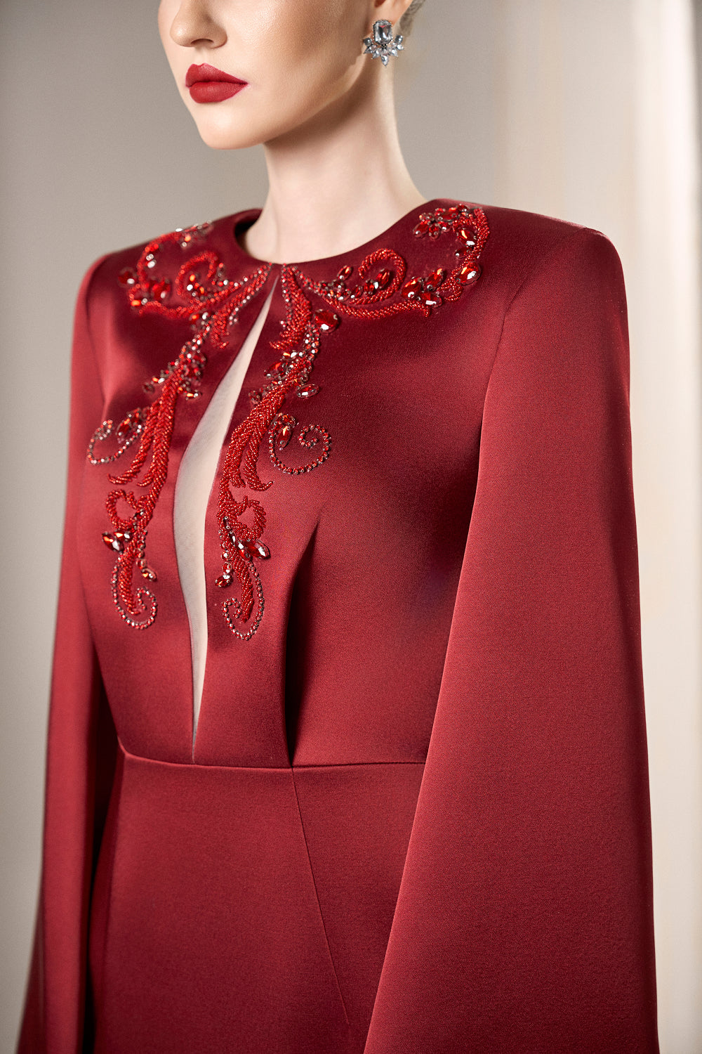 Inform when this item available Dress Structured taffeta gown, crystal bodice, dramatic slit sleeves