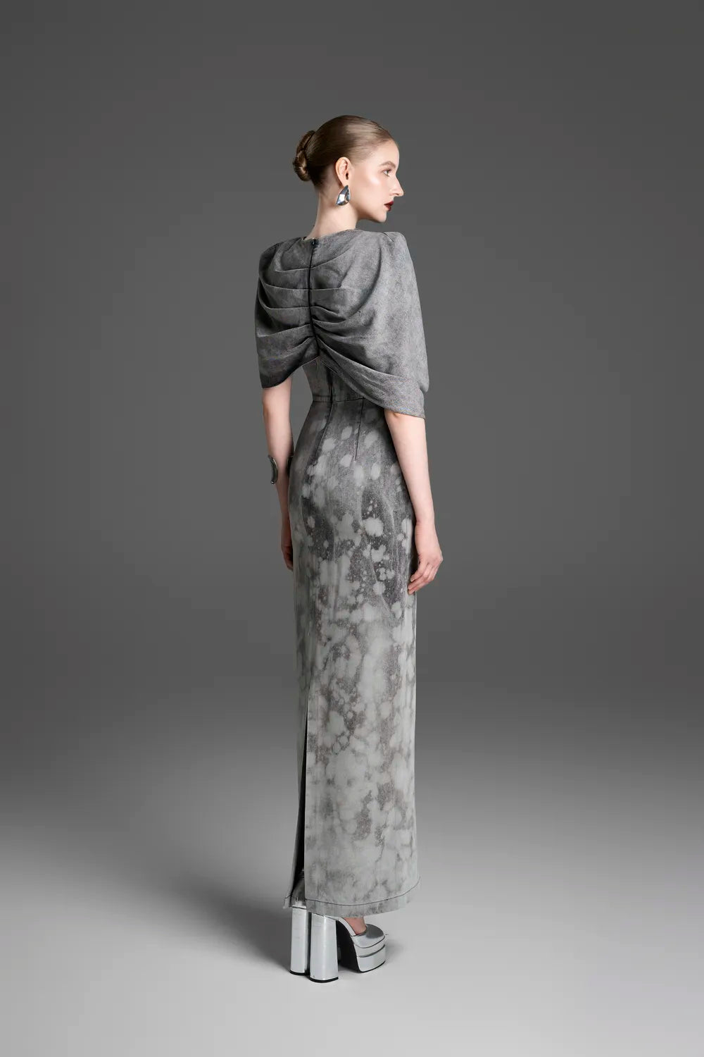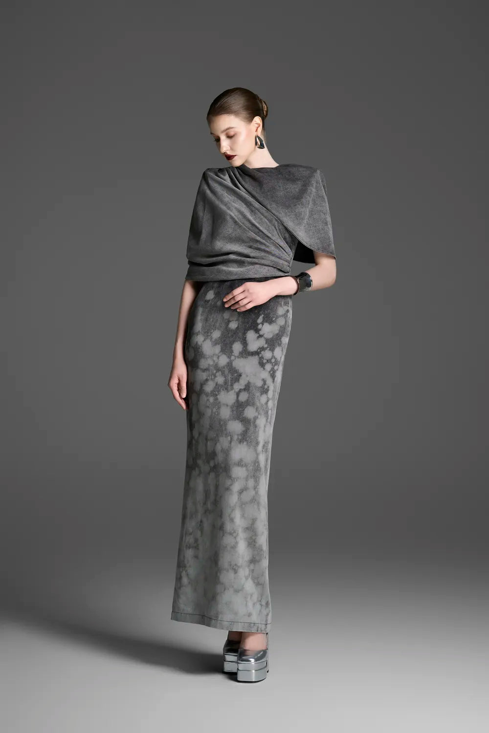 Inform when this item available Asymmetric Draped Cape With Straight Washed Dress